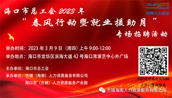 6月24日上午9時-12時,由海口市龍華區人力資源和社會保障局、??谑校埲A)人力資源服務產業園主辦,杰...